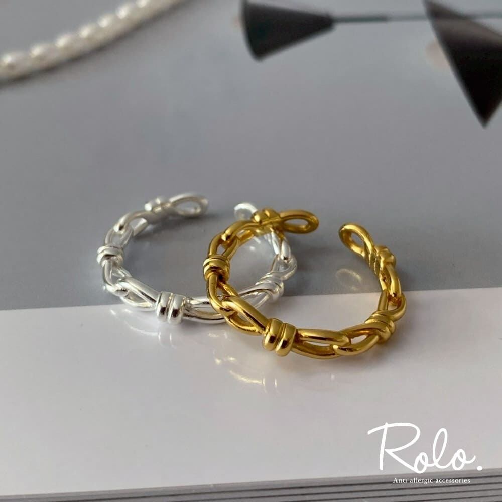 結び目モチーフが連なるデザインリング。