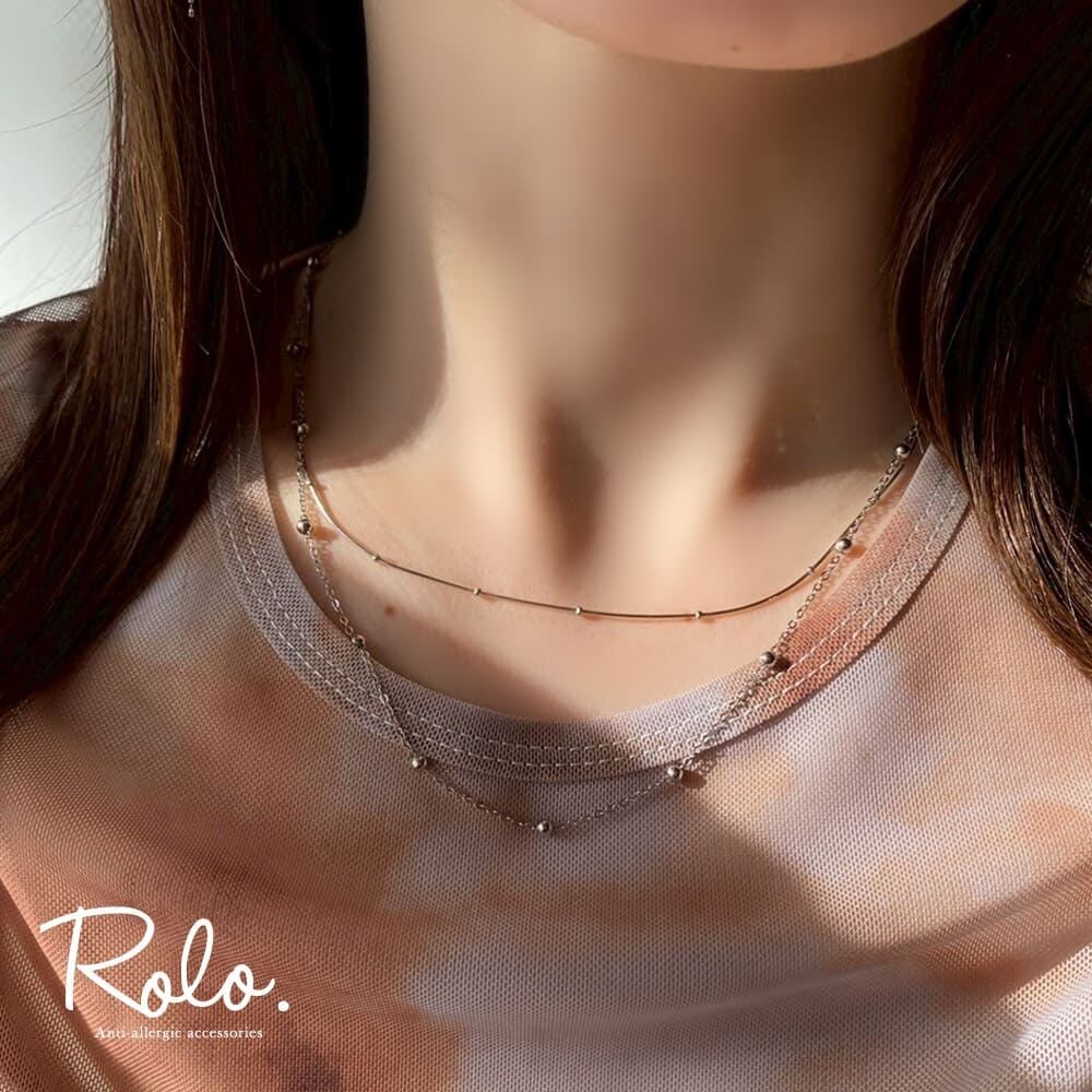 小豆チェーンとスネークチェーンの異素材ミックスで、首元にさりげない遊び心と奥行きをプラス。