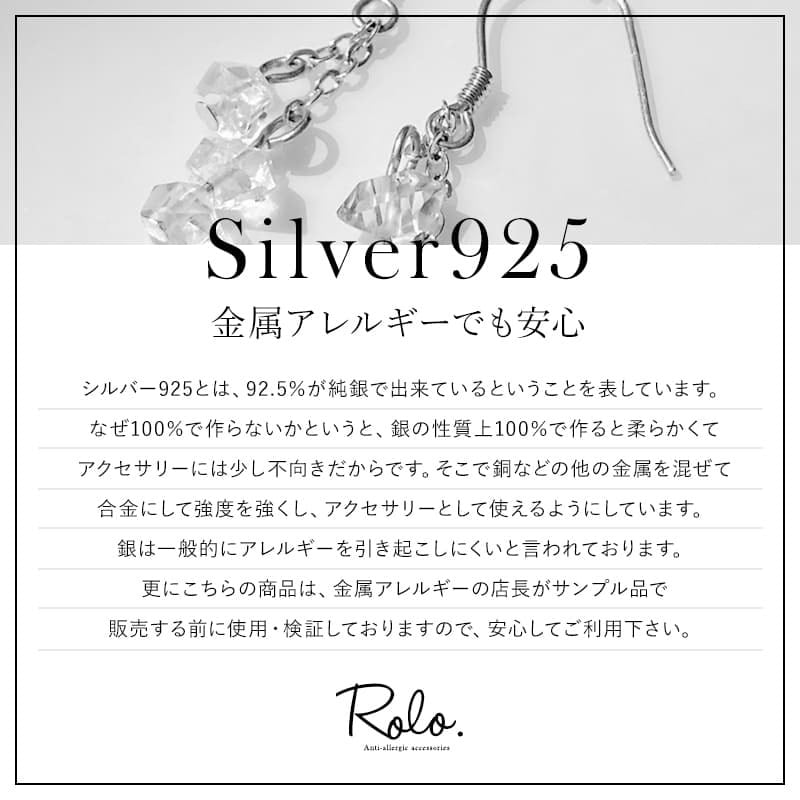 金属アレルギー症状の起こりにくい“シルバー925”を採用。
