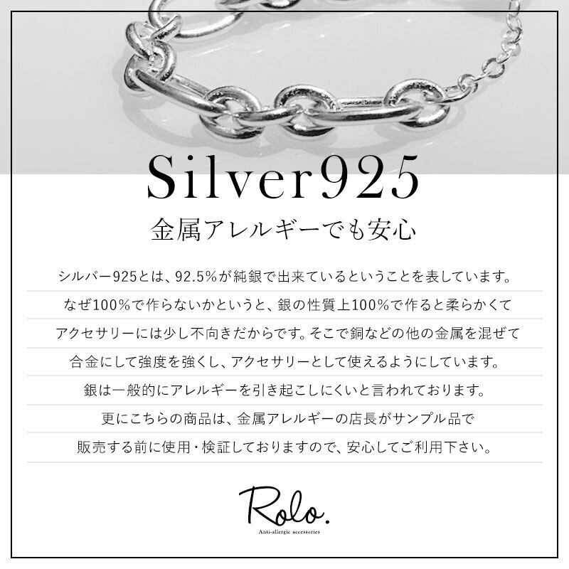 シルバー925 とは、92.5%が純銀で出来ていることを指します。銀は金属アレルギーになりにくい素材で、とても柔らかい金属のため残り7.5%に主に銅を使うことでアクセサリーとして使えるよう硬くしています。