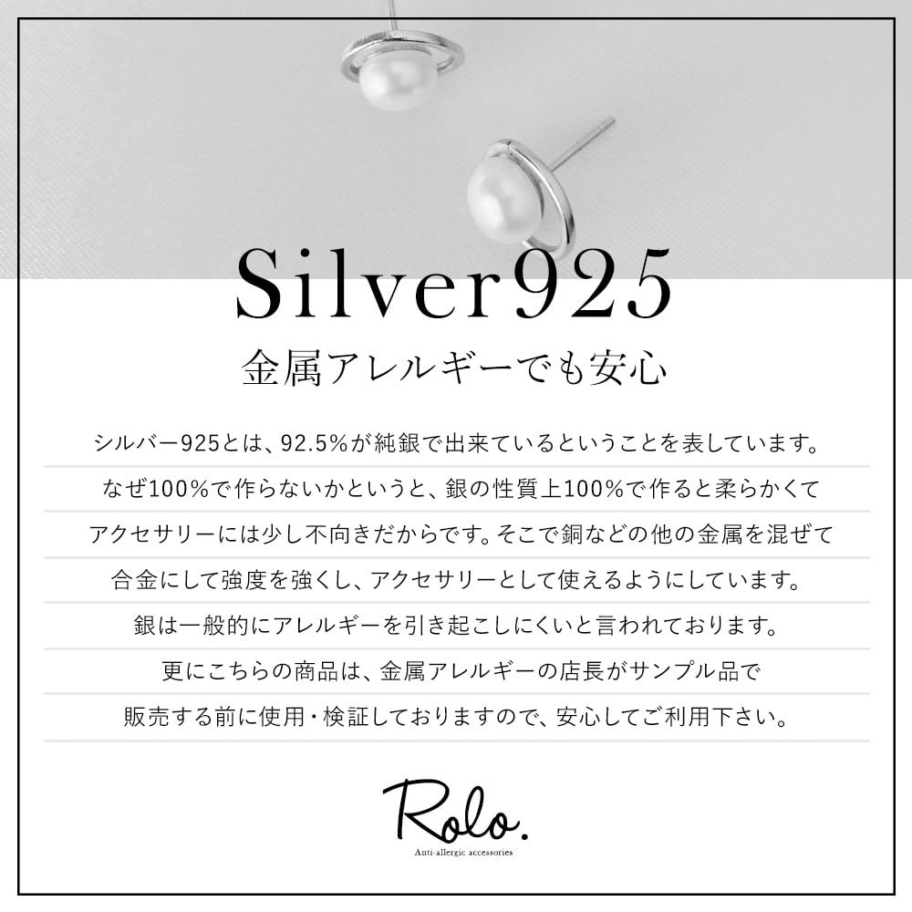 シルバー925 とは、92.5%が純銀で出来ていることを指します。銀は金属アレルギーになりにくい素材で、とても柔らかい金属のため残り7.5%に主に銅を使うことでアクセサリーとして使えるよう硬くしています。