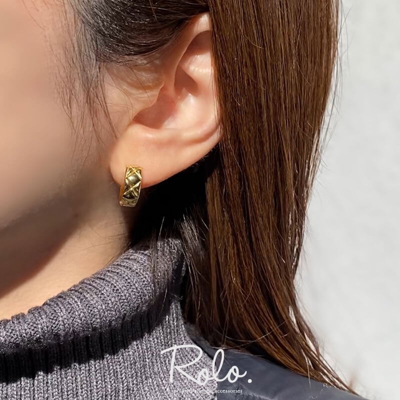 温かみのある、ぷっくりとしたキルティングデザインを施したフープピアス。