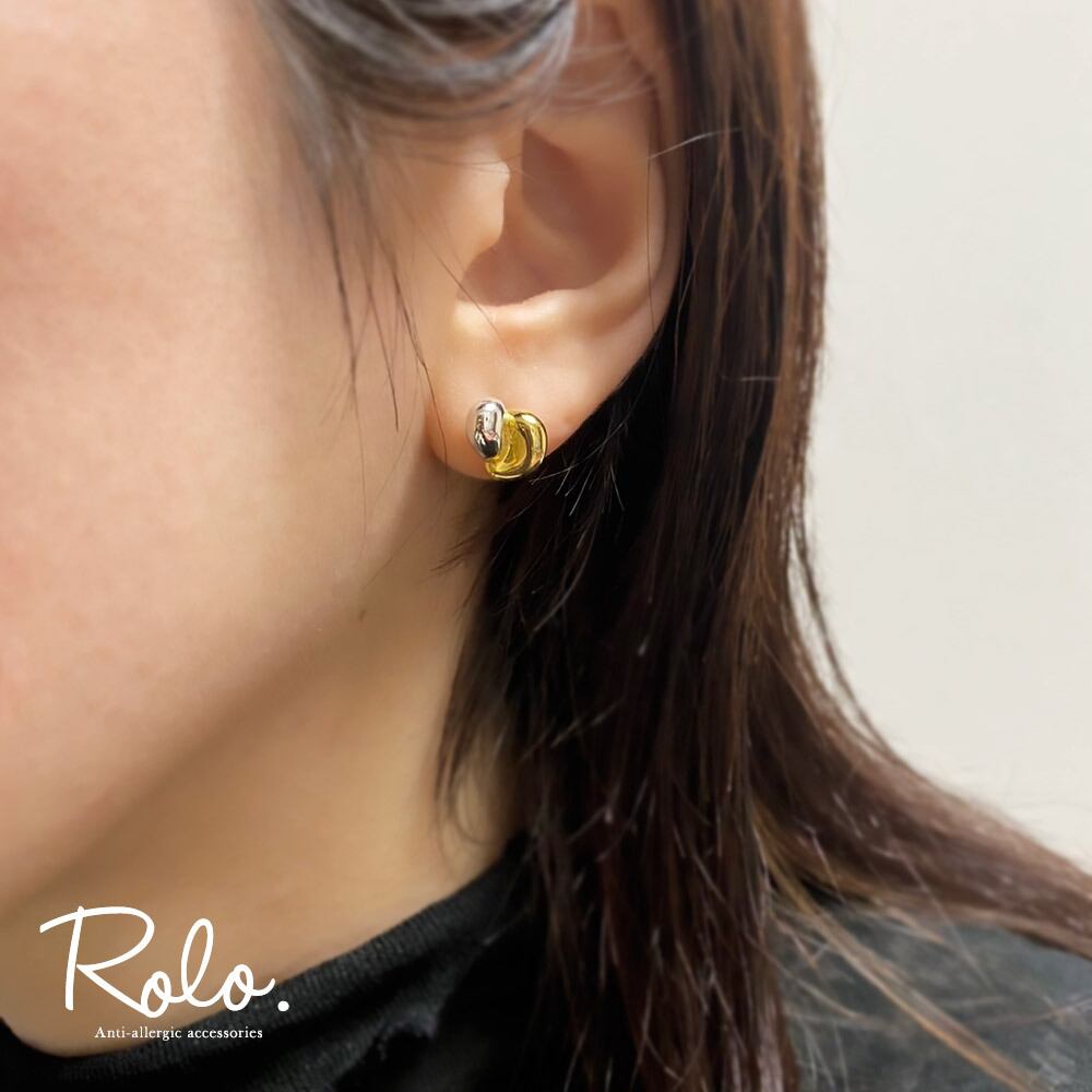 シルバーとゴールドをミックスしたニュアンスピアス。